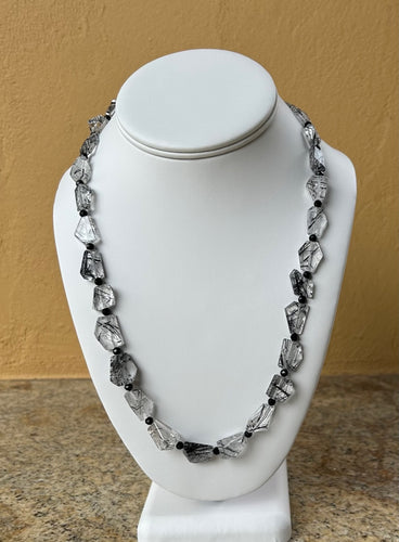 Necklace - 21" tourmaline quartz with black spinel spacers