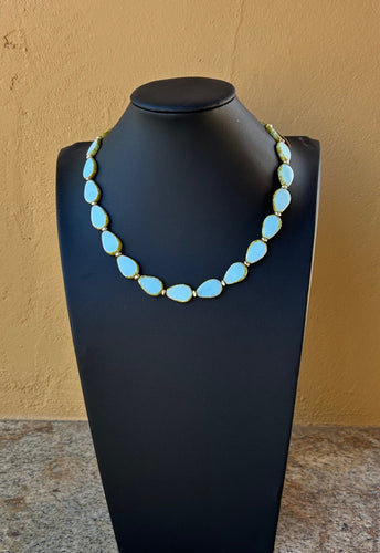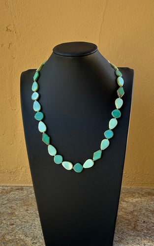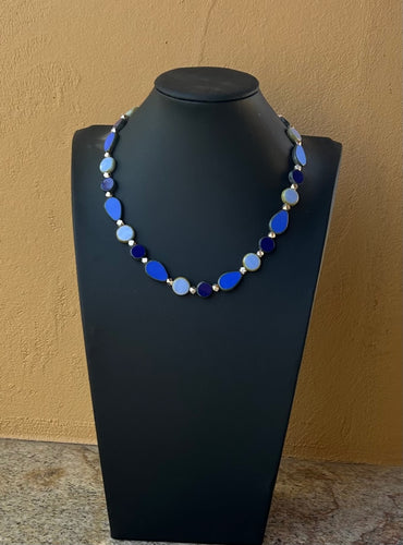Necklace - 22" Czech glass in shades of teal with sterling clasp