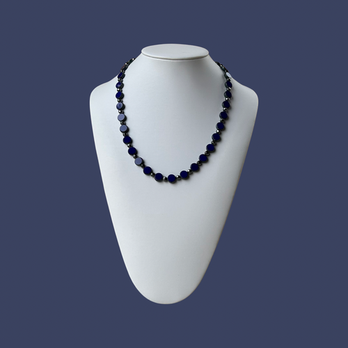 Necklace - Cobalt blue round Czech beads with hematite spacers