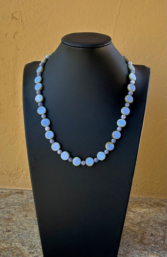 Necklace - 21" blue-violet coin shape Czech glass with sterling
