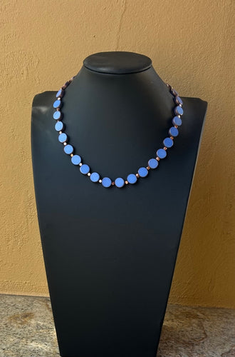 Necklace - Round coin shape blue Czech glass with copper spacers
