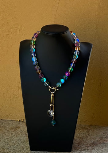 Necklace - 18" multi color quartz beads with 14k gold filled chain and toggle