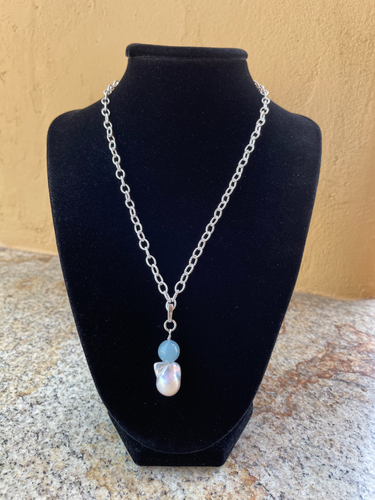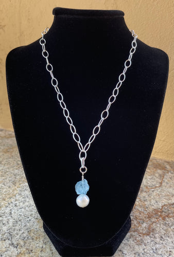 Necklace - 17" with detachable pearl and aquamarine pendant