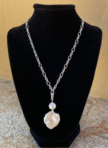 Necklace - Sterling silver with pearl and aquamarine pendant