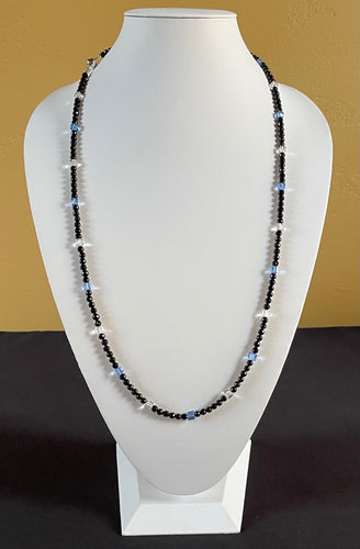 Necklace - 17" coated blue sapphire faceted beads with white pearls and Swarovski cubes
