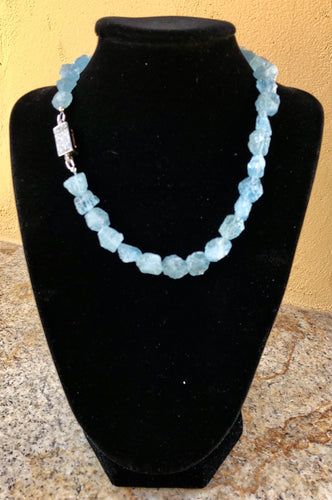 Necklace - 6mm Aquamarine beads with a gorgeous white fresh water pearl pendant