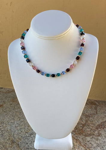 Necklace - Multi-color Swarovski crystal necklace with sterling silver