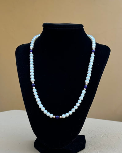 Necklace - Beautiful fresh water pearls with amethyst and matted gold Swarovski pearls