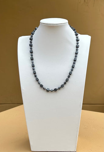 Necklace - 20" Matted grey hematite with a sterling silver push clasp
