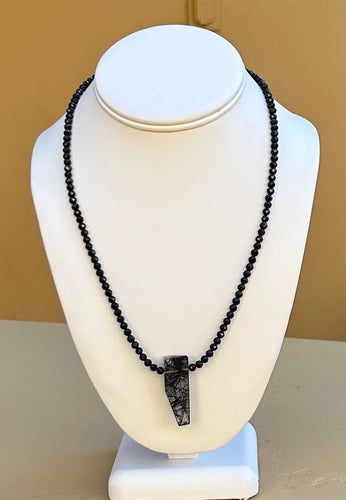 Necklace - 20" Faceted black spinel with a black tourmaline pendent