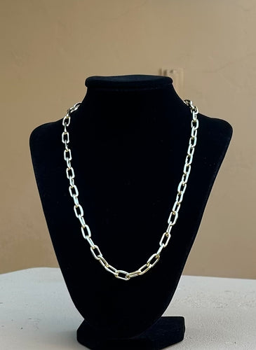 Necklace - Sterling silver flat paperclip chain with a hand made clay bead