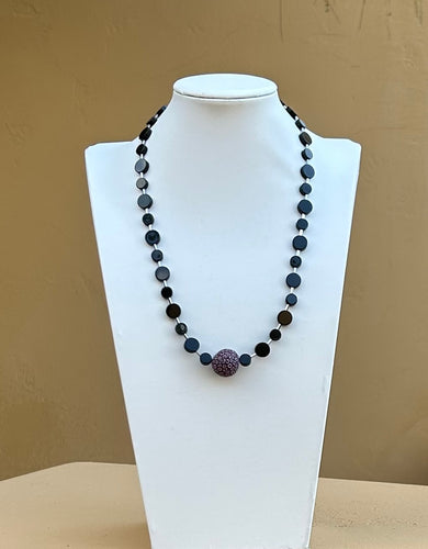 Necklace - Black coin shape onyx beads with silver hematite spacers