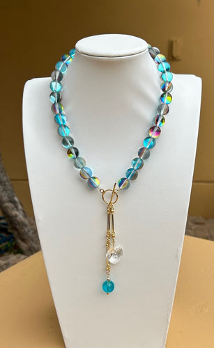 Necklace - Aurora glass beads emphasizing teal - 18" with 4" toggle