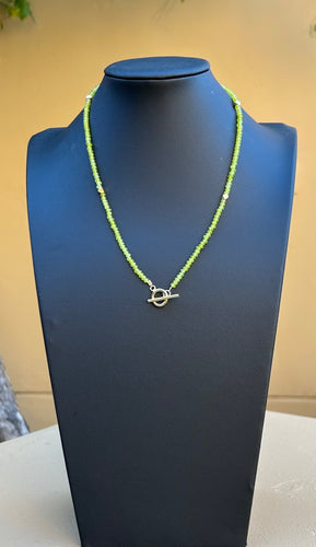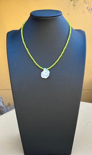 Necklace - 3mm lime green jade with irregular pearl pendant