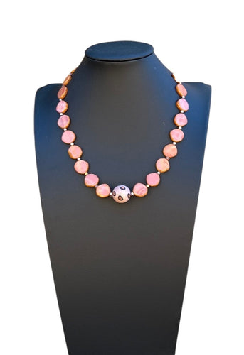 Necklace - 18" Salmon color Czech glass with a large handmade clay bead
