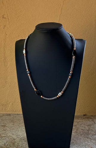 Necklace - Silver coated Hematite rondelles with copper, sterling silver and Czech glass