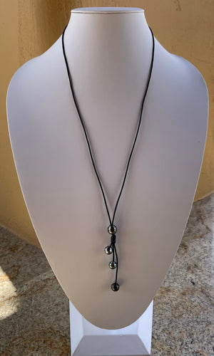 Necklace - Black spinel with white round pearls and Swarovski crystals